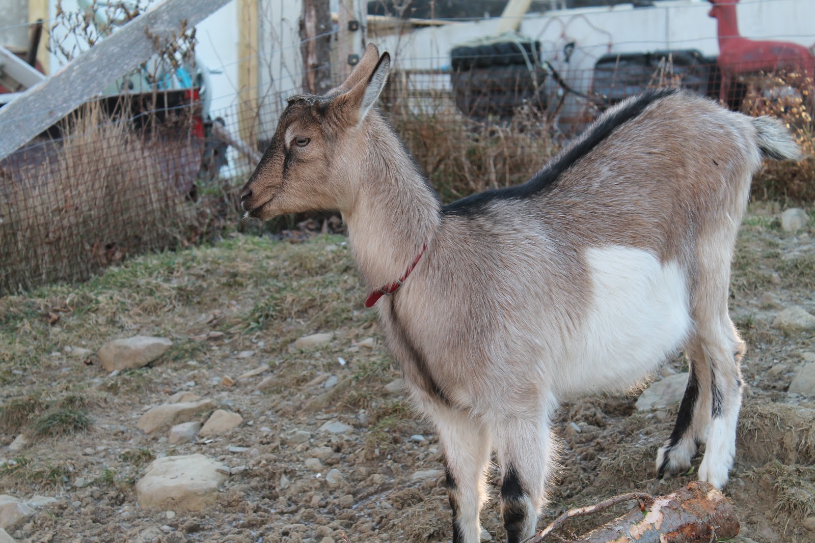 Our goat god MacHattie was at the end of his rope. So were we. We had a useless goat. For a month or so we didn't bother milking her. We just let the kid nurse.